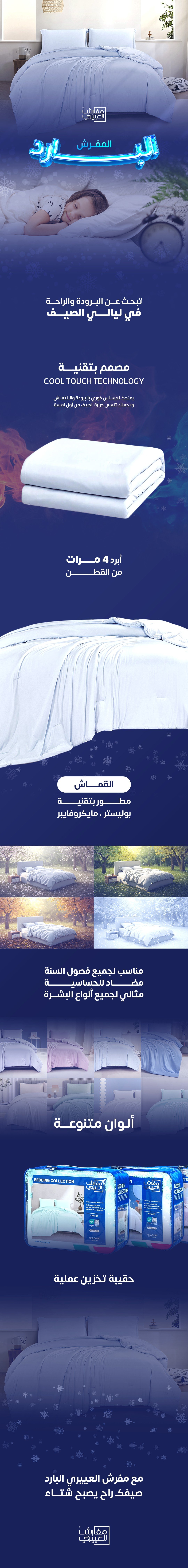 يتميز المفرش بخامة مايكروفايبر فاخرة ومطورة، تم اختيارها بعناية لتجمع بين النعومة الفائقة والإحساس البارد.