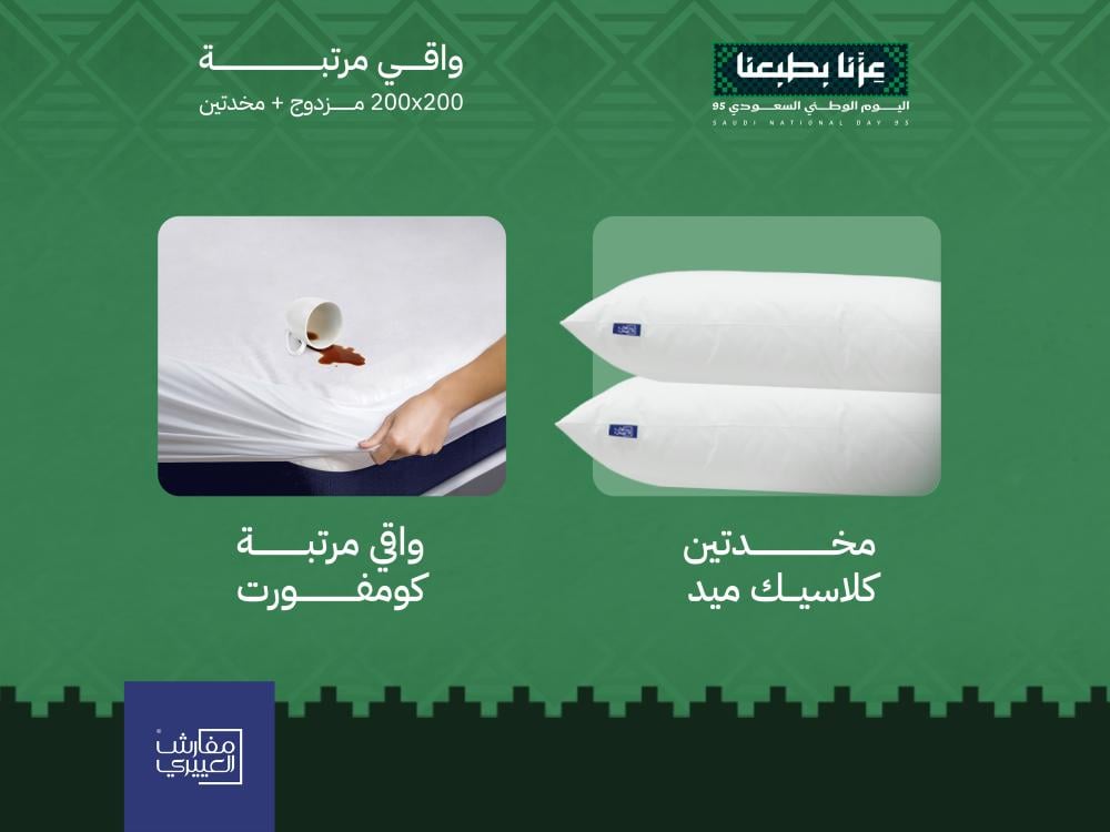 واقي مرتبة يوفر حماية ممتازة لمرتبتك من الاتساخ أو تسرب السوائل الى سطح المرتبة مما يساعد على إطالة عمر مرتبتك بالإضافة الى مخدتين كلاسيك ميد
