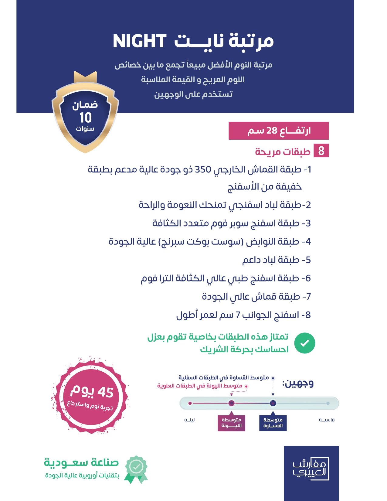 مراتب سرير-نايت ضمان 10 سنوات من ماركة مفارش العييري الخاصة