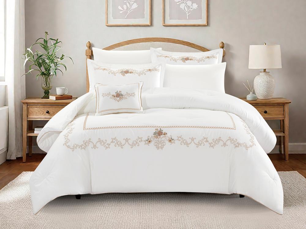 نقدم لك مفرش سولين لـ صيف من ماركة مفارش العييري الخاصة المزين بتطريز خلاب ومتناسق مما يعطيه منظراً فاخراً وجذاباً من أجل شعور مريح مثل ملامسة الغيوم إذ يمتاز بخامة القطن عالية الجودة 200 غرزة التي ستشعرك بالراحة والنعومة اللازمة من أجل نوم مريح ويمتاز المفرش بتصميمه الحيوي والبارد من أجل نوم هانئ وصباح مليء بالنشاط .