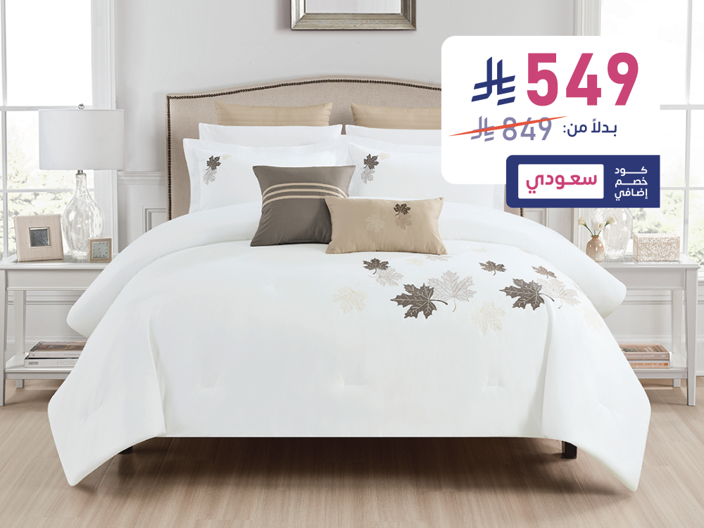نقدم لك مفرش سوسنا لـ صيف من ماركة مفارش العييري الخاصة المزين بتطريز خلاب ومتناسق مما يعطيه منظراً فاخراً وجذاباً من أجل شعور مريح مثل ملامسة الغيوم إذ يمتاز بخامة القطن عالية الجودة التي ستشعرك بالراحة والنعومة اللازمة من أجل نوم مريح ويمتاز المفرش بتصميمه الحيوي والبارد من أجل نوم هانئ وصباح مليء بالنشاط .