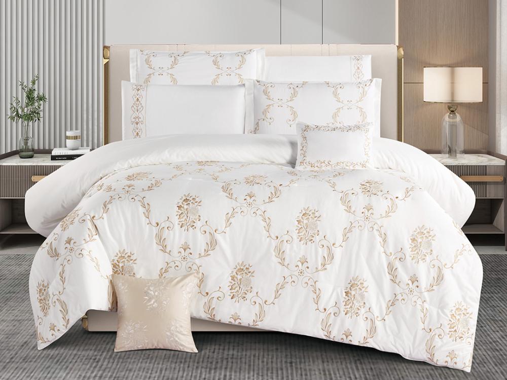 نقدم لك مفرش لـ صيف من ماركة مفارش العييري الخاصة المزين بتطريز متناسق مما يعطيه منظراً فاخراً وجذاباً من أجل شعور مريح مثل ملامسة الغيوم إذ يمتاز بخامة القطن عالية الجودة منسوجة ب300 غرزة التي ستشعرك بالراحة والنعومة اللازمة من أجل نوم مريح ويمتاز المفرش بتصميمه الحيوي والبارد من أجل نوم هانئ وصباح مليء بالنشاط .