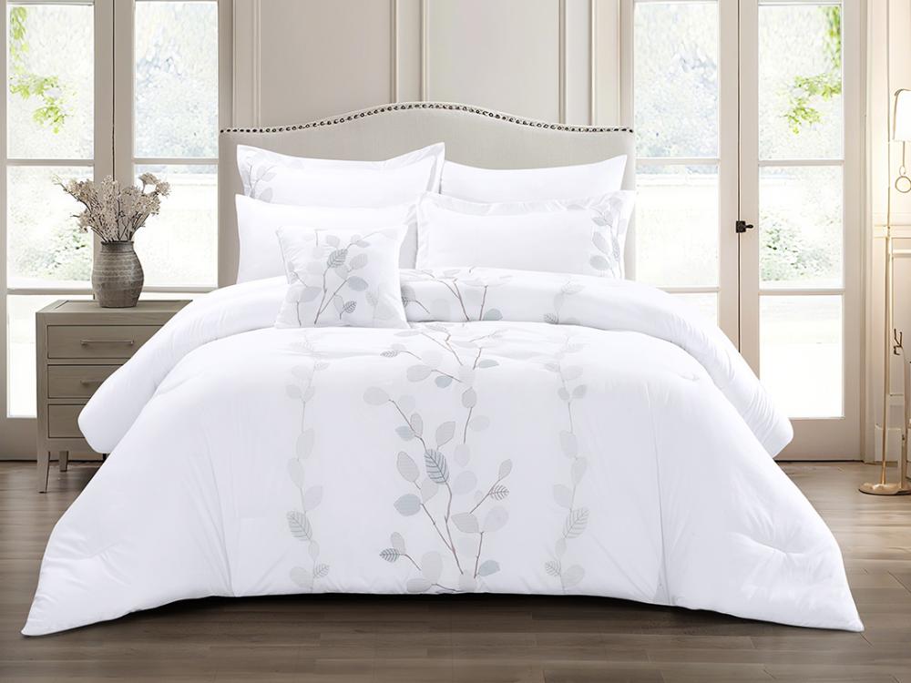 نقدم لكم مفرش إي المطرز والمميز من ماركة مفارش العييري الخاصة المزين بتطريز خلاب ومتناسق مما يعطيه منظراً فاخراً وجذاباً ويمتاز بخامته بديلة القطن من بوليستر مايكروفايبر ناعم وسلس الملمس مما يوفر لك راحة نهاية كل يوم ...