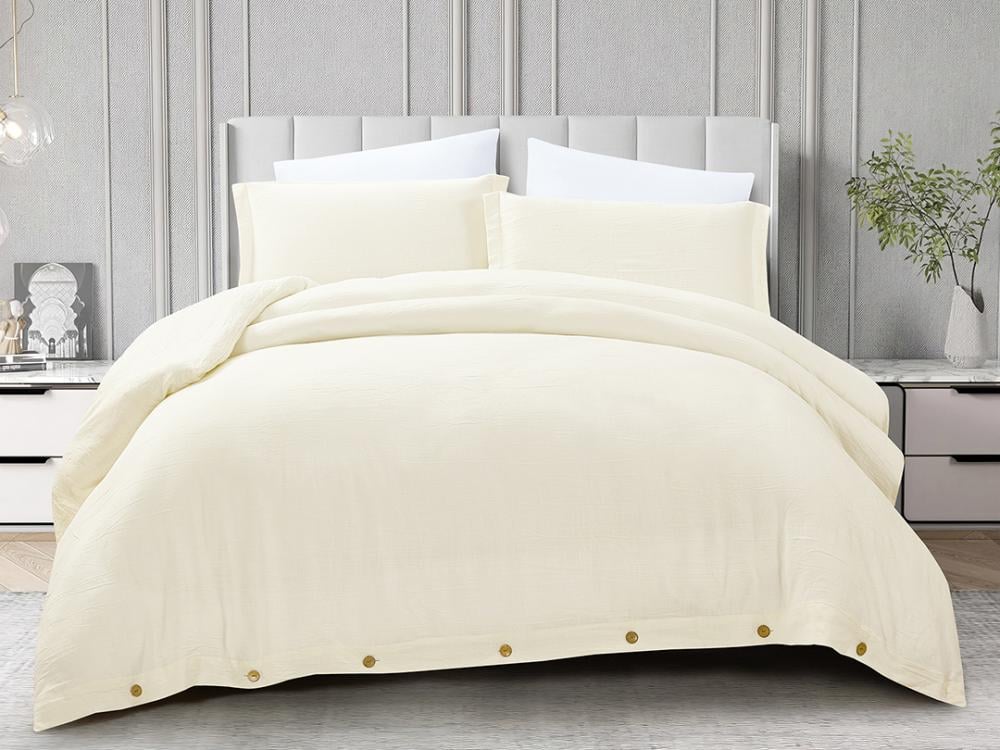 نقدم لك مفرش لينين من ماركة مفارش العييري الخاصة يأتي المفرش بخامة من القطن الكتان مما يعطيه منظراً فاخراً وجذاباً من أجل شعور مريح مثل ملامسة الغيوم إذ يمتاز بخامة عالية الجودة التي ستشعرك بالراحة اللازمة من أجل نوم مريح ويمتاز المفرش بتصميمه الحيوي والبارد من أجل نوم هانئ وصباح مليء بالنشاط .