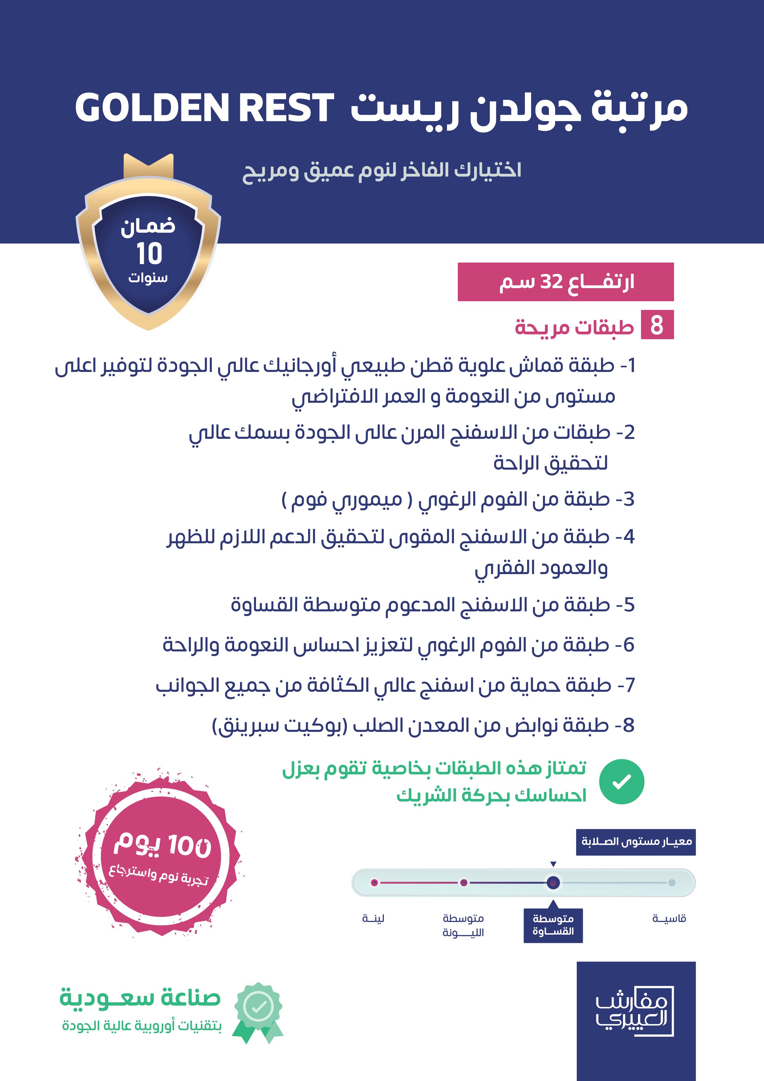 مراتب سرير- جولدن ريست ضمان 10 سنوات من ماركة مفارش العييري الخاصة