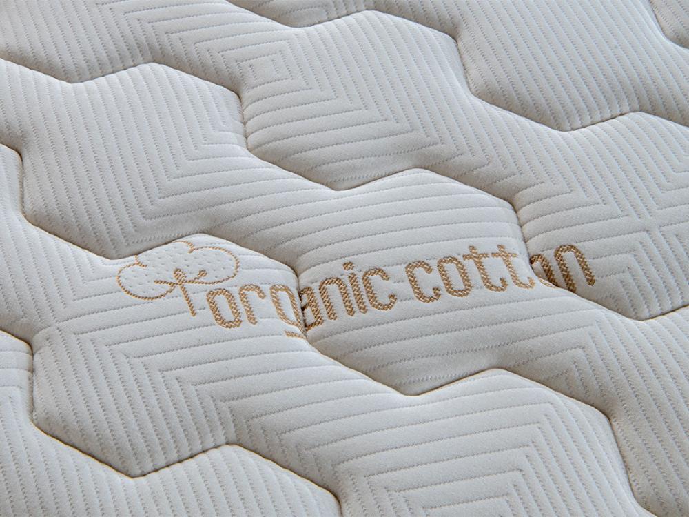 1. طبقة قماش قطن طبيعي اورجانيك عالي الجودة يغطي كامل المرتبة لتوفير اعلى مستوى من النعومة و العمر الافتراضي