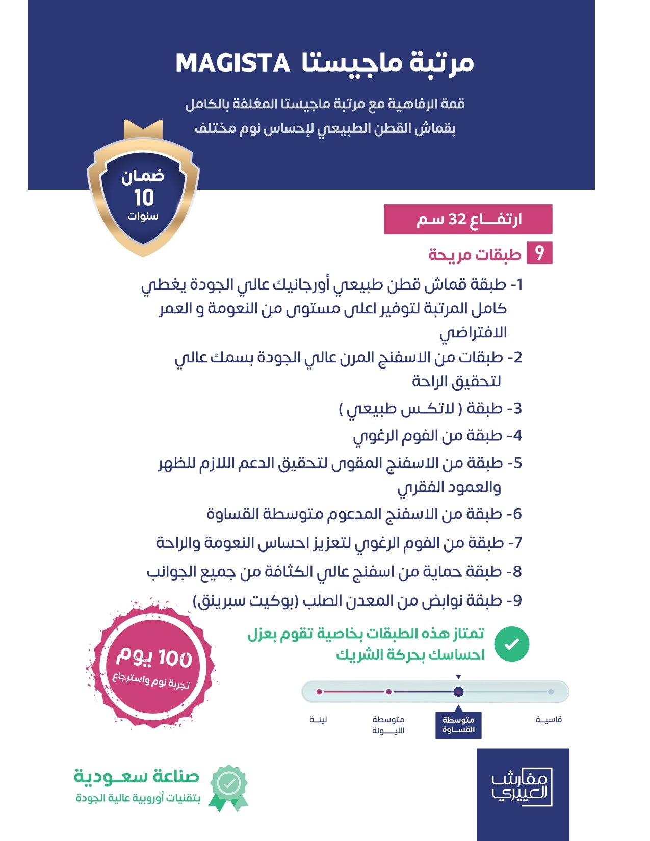 مراتب سرير- ماجيستا ضمان 10 سنوات من ماركة مفارش العييري الخاصة