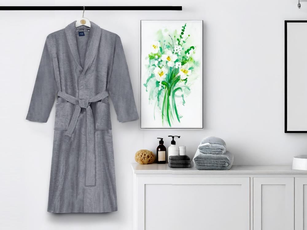 Terry - GREY || روب استحمام تيري - رمادي من خامة القطن - M