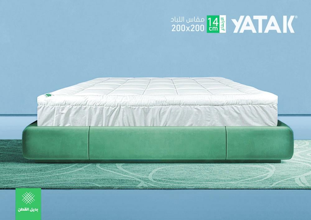 مع لباد ياتاك انعم براحة لا مثيل لها وليالي من النوم العميق والمريح لتستيقظ بجد ونشاط , يمتاز اللباد بخامته عالية الجودة فائقة النعومة من نسيج المايكروفايبر البديل المناسب للقطن , يساعد اللباد على توفير نوم صحي وذلك عن طريق سماكته التي تمنح الظهر والعمود الفقري الدعم اللازم لها لهذا في حال كنت تبحث عن النوم المريح والصحي فـ لباد ياتاك هو خيارك الأنسب و ليعطيك اللباد أفضل نتيجة ينصح عند استخدامه للمرة الأولى فرده و تركه دون استخدام لمده تتراوح ما بين 3 إلى 4 ساعات . يأتي بإطار مرتبة بارتفاع 35 سم يكون بشكل محكم .