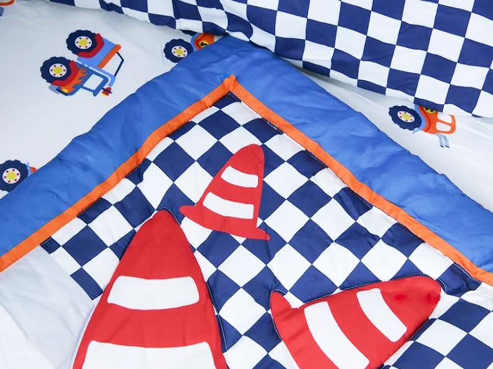 ويأتي المفرش برسومات سيارات لطيفة تلائم الأطفال وتبهجهم .