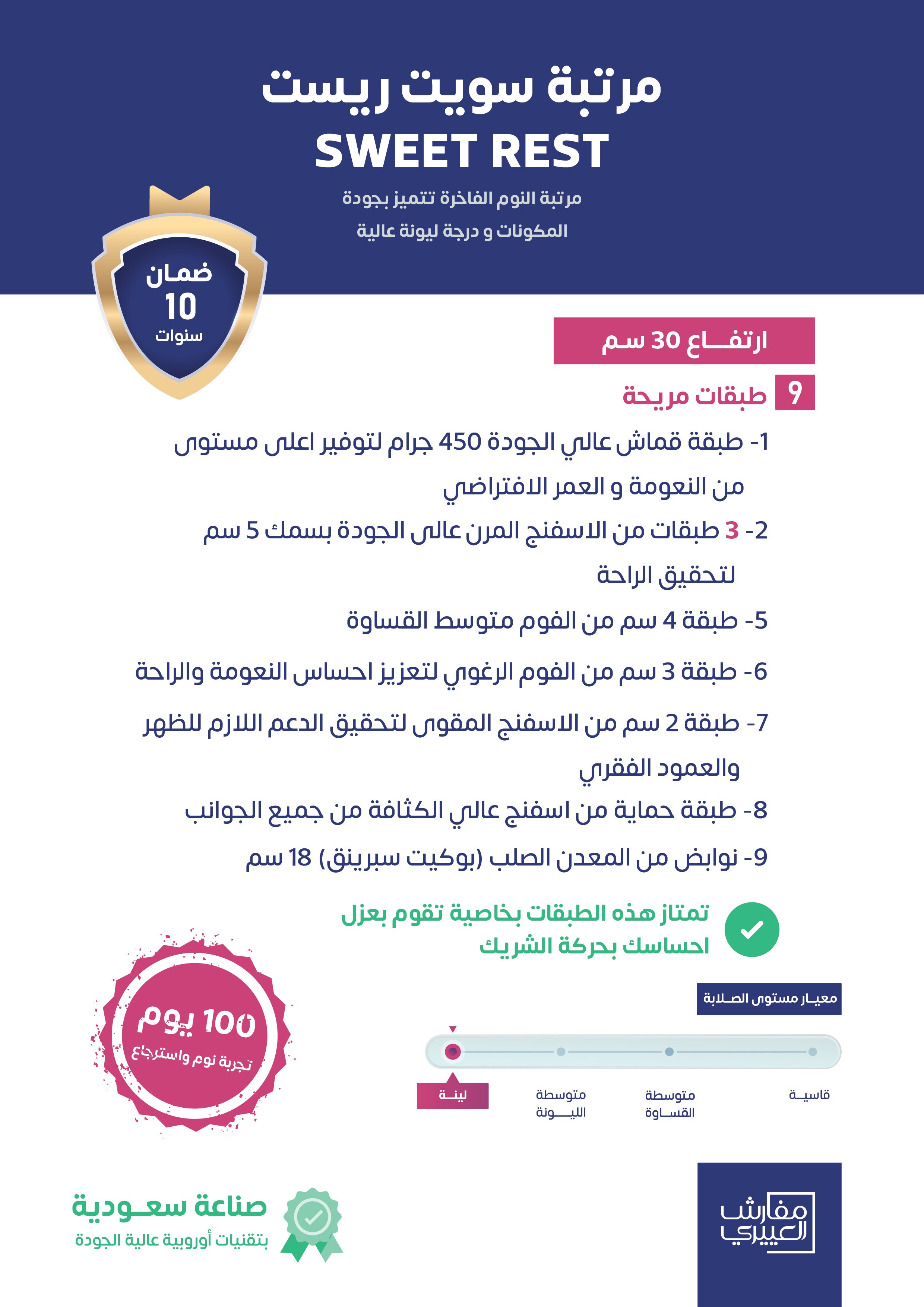 يمكنك تجربة المرتبة لمدة 100 يوم وان لم تناسبك استرجعها بكل سهولة