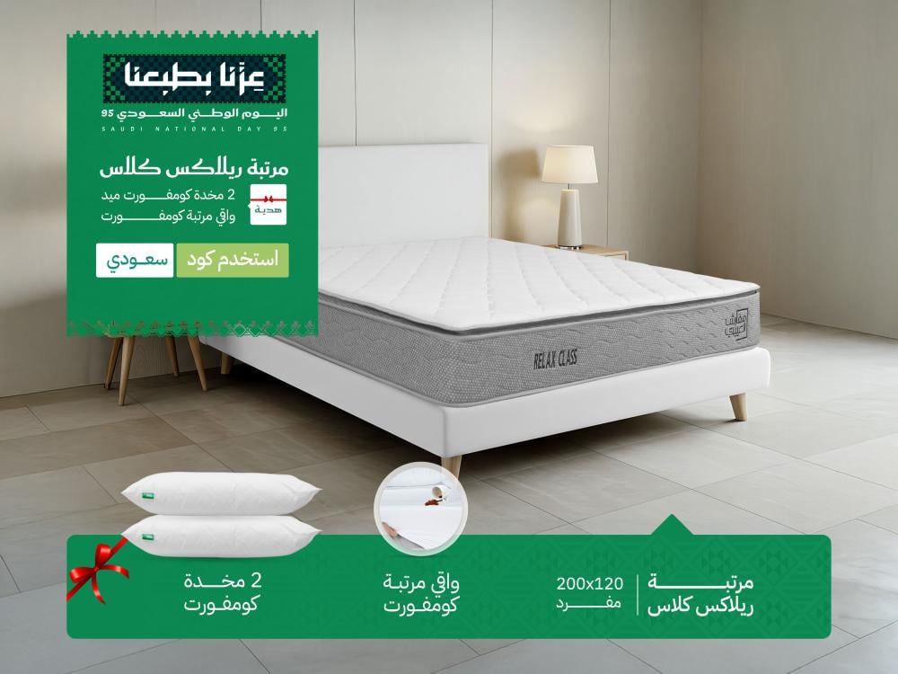 نقدم لكم مرتبة ريلاكس كلاس من ماركة مفارش العييري الخاصة وهي أول نوع من أنواع مراتب مفارش العييري الكلاسيكية وتمتاز بخامتها المميزة وتعدد طبقاتها إذ تعمل كل طبقة على إعطاء الدعامة والراحة اللازمة للظهر كما تعتبر مرتبة ريلاكس كلاس هي الخيار الاقتصادي والأوفر لمن يبحث عن تجربة نوم هانئة ومريحة ...